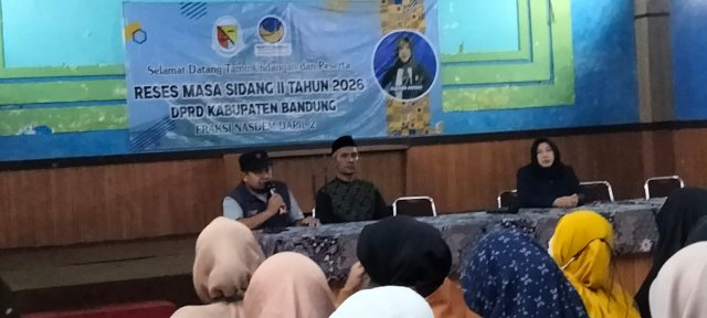 Kab.Bandung Ketikone – Anggota DPRD Kabupaten Bandung dari Fraksi Nasdem, Hj. Aas Aisyah laksanakan reses pertama untuk masa sidang II tahun 2026, di Gor Desa Mekarrahayu Kecamatan Margaasih (22/2/2026) tampung berbagai aspirasi.