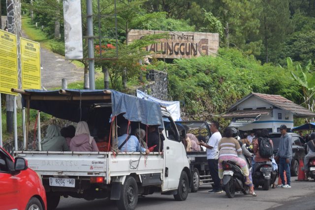 Sejak pagi hari, antrean kendaraan roda dua maupun roda empat sudah terlihat memadati akses jalan menuju kawasan wisata. Kepadatan lalu lintas bahkan sempat tersendat di beberapa titik, seiring tingginya volume pengunjung yang datang silih berganti. Banyak di antara mereka merupakan wisatawan lokal maupun dari luar daerah yang memanfaatkan sisa masa liburan untuk berwisata bersama keluarga.